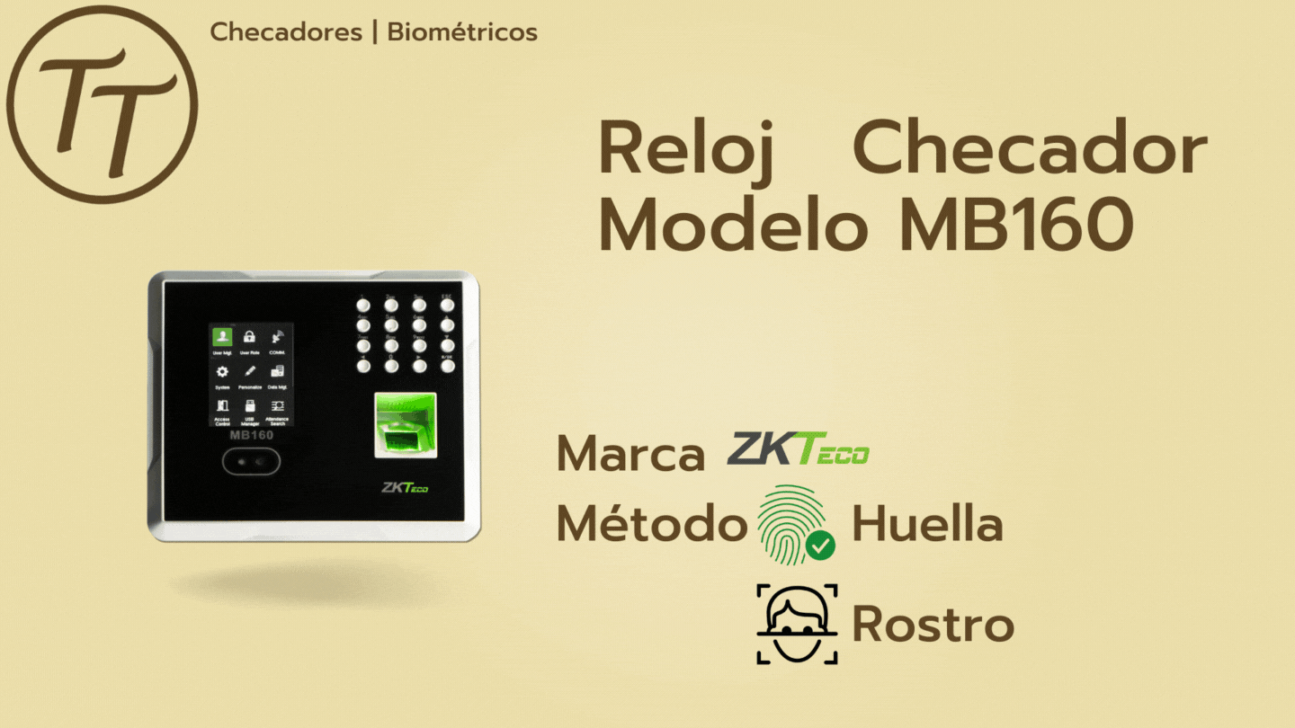 El MB160 es un innovador dispositivo para la gestión de tiempo y asistencia de los empleados, soporta métodos de verificación por medio de rostro, huella digital, contraseña y combinaciones entre los anteriores además de funciones básicas de Control de Acceso.