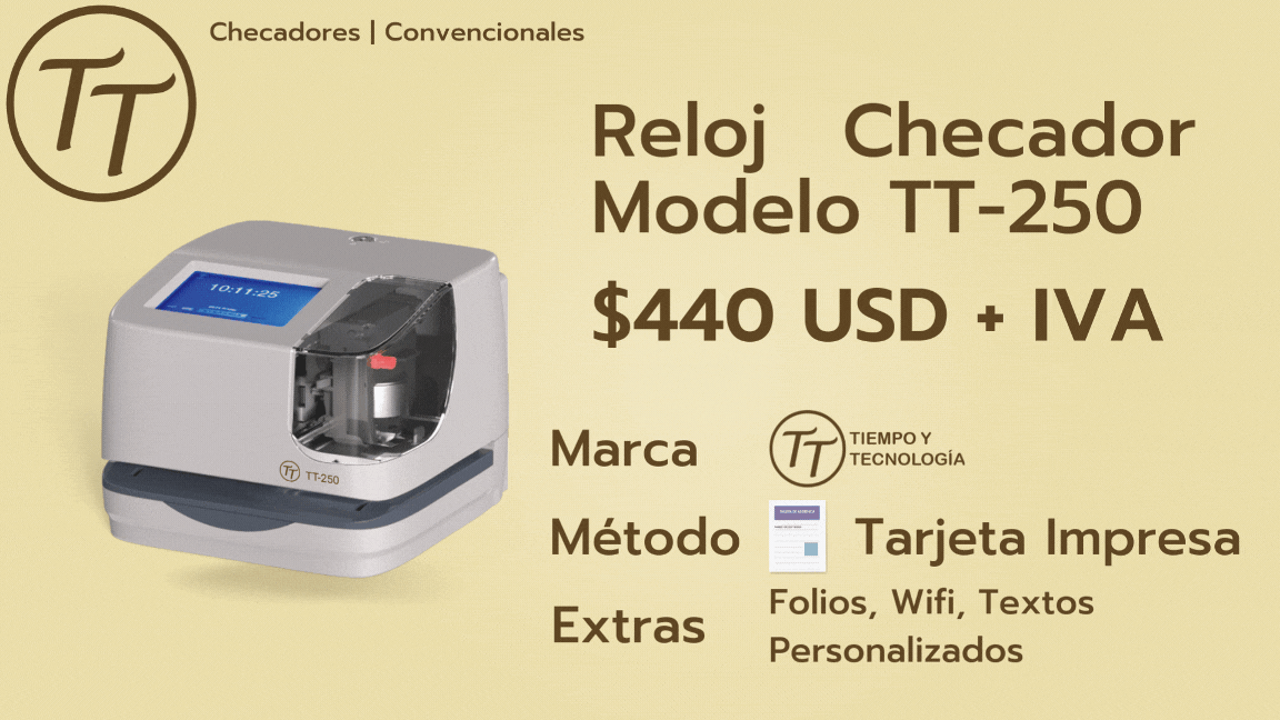 El reloj marcador de tiempo es un dispositivo que imprime folios y textos personalizados para controlar la asistencia o la recepción de documentos. Tiene una pantalla táctil y se actualiza automáticamente a través de WiFi, lo que lo hace fácil de usar y preciso. Es una excelente inversión para cualquier empresa moderna.
